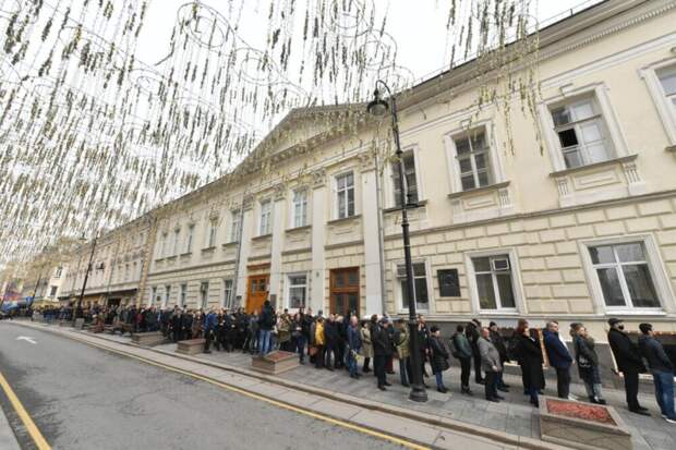 К Дому Союзов в центре Москвы пришли сотни людей, очередь растянулась более чем на 150 метров. Многие принесли цветы.